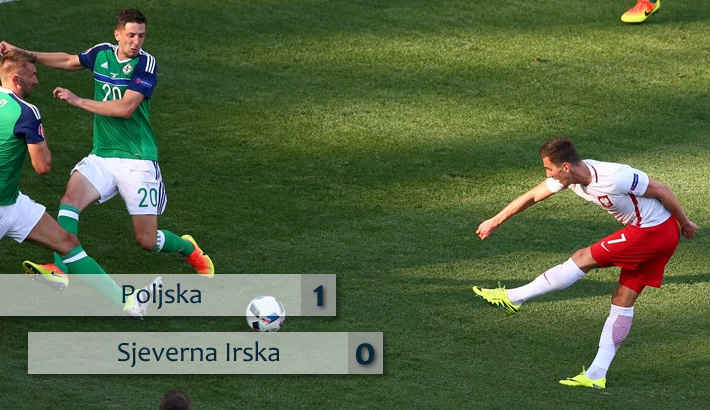 U prvoj utakmici prvog kola grupe C reprezentacija Poljske je upisala pobjedu rezultatom 1:0 protiv Sjeverne Irske. Prvu pobjedu Poljskoj na završnicama europskih prvenstava donio je Arkadiusz Milik golom u 51. minuti.