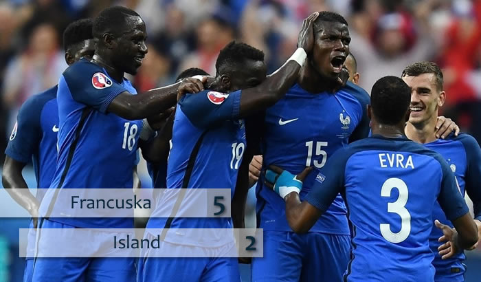 Senzacionalan put Islanda u njihovom debitantskom nastupu na Euru završio je u četvrtfinalu, a Francuzi nastavljaju prema svom cilju: još jednom europskom trijumfu na domaćem terenu. U polufinalu ih čeka aktualni svjetski prvak, Njemačka, a taj je dvoboja na rasporedu u četvrtak, 7. srpnja (21 sati), na stadionu Velodrome u Marseilleu.